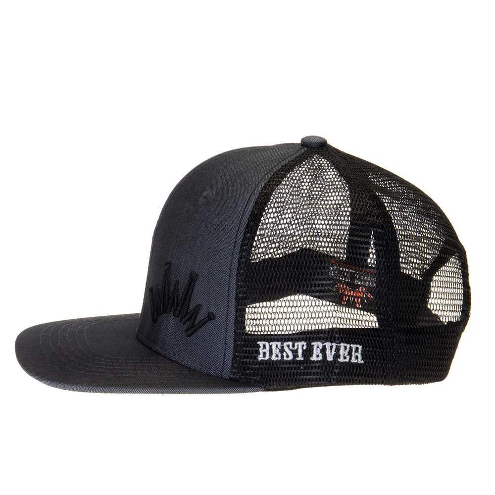 - This snapback cap features a grey front, black mesh back, and black embroidered Best Ever crown logo.