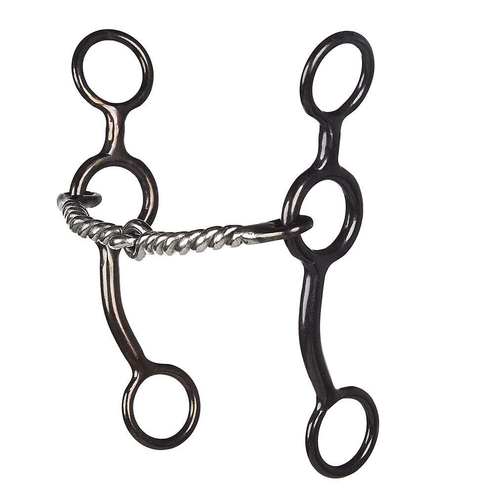 Medium to strong severity. 3/16 twisted wire mouth. Good tune up mouthpiece, twist applies pressure in a serrated fashion across the bars allowing more feel with less pressure.