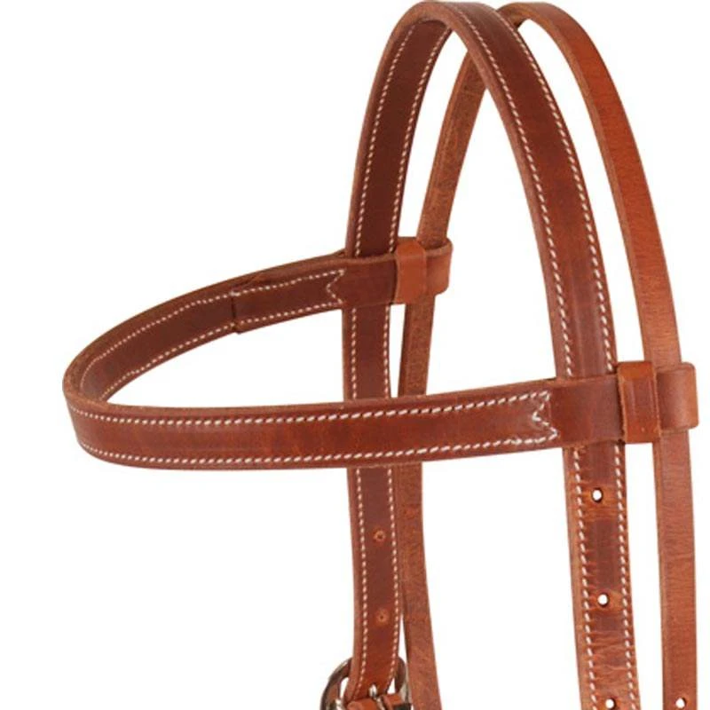 This double stitched browband headstall by Martin Saddlery is a great addition to any tack room! This is a 3/4″ double stitched headstall with cart buckles and latigo bit ties. It is made of Hermann Oak Harness Leather.