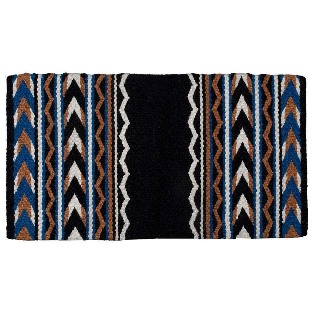Mustang’s own custom “Arrowhead” blanket design hand woven of 100% New Zealand wool. 36″ x 34″.