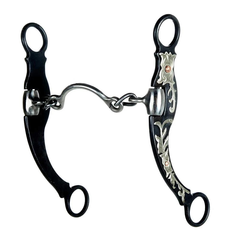 Sweet iron ported chain bit with beautiful floral engraved design on cheek.