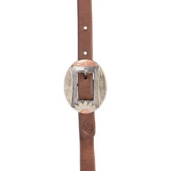 Nrs Tack Economy Oiled 5/8 Inch Browband Headstall With Copper Flower Silver Bar Cart Buckle