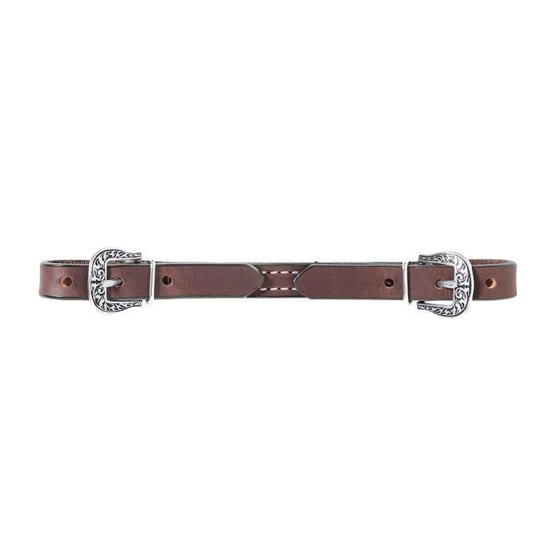 This Weaver Basin Cowboy Flat Curb Strap features stainless steel buckles with floral scrolling. It is made of English Bridle Leather and is part of Weaver’s Basin Cowboy Series.